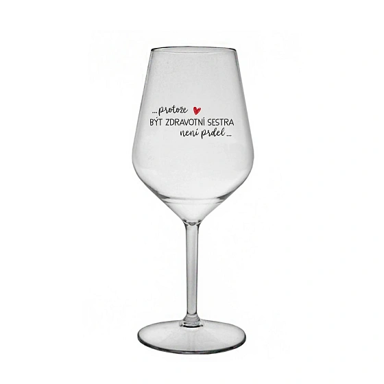 Nerozbitná čirá vinná sklenice s motivem PROTOŽE BÝT ZDRAVOTNÍ SESTRA NENÍ PRDEL je skvělá na zahradu, pláž, výlet, piknik a parádu udělá i při kempování. Jelikož je vyrobená z kvalitního polykarbonátu je de facto nerozbitná. Je to luxusní kousek, s nímž si víno můžete vychutnat prostě kdekoliv. Mají ergonomický tvar, který příjemně padne do ruky a protože je lehká, usnadňuje to její přenášení. Je snadno skladovatelná a lehce se čistí. Díky svému designu si s ní můžete vychutnat doopravdy kdekoliv bezproblémové pití výborného vína. Materiál PP. Vyrobené s láskou v ČR