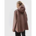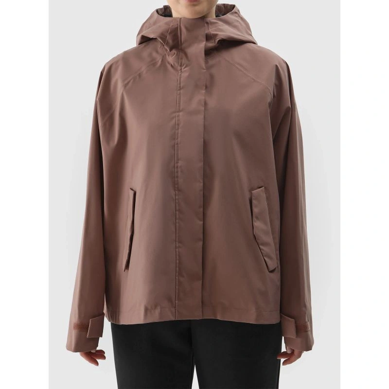 Miejska energia: kurtka dla aktywnych na co dzień. Kurtka przejściowa z kapturem damska idealnie sprawdzi się jako element casualowych, codziennych stylizacji, a dzięki wykorzystanym funkcjom i technologiom można ją nosić także w trakcie aktywności sportowych. Zapewni komfort termiczny w cieplejsze dni. Wykonana z materiału syntetycznego, który zapewnia trwałość i jest łatwy w pielęgnacji. Posiada oversizowy krój, który luźno układa się na sylwetce i zapewnia dużą swobod. Hydrofobowa powłoka impregnacyjna pokrywa zewnętrzną warstwę materiału i zabezpiecza ją przed wchłonięciem wody. Powłoka sprawia, że wilgoć skrapla się na powierzchni tkaniny lub dzianiny, po czym swobodnie po niej spływa.