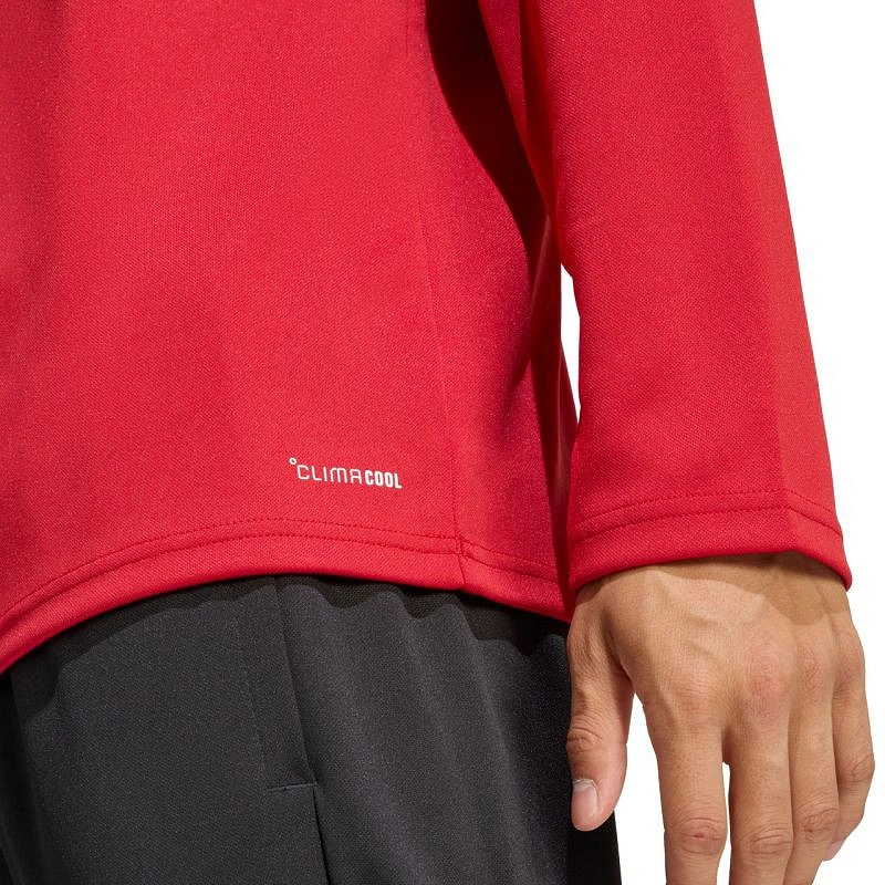 Bluza męska adidas Entrada 26 Training Top czerwona JZ6650 Bluza męska adidas sprawdzi się podczas treningów. Dopasowany krój. Zamek do połowy piersi. Patka chroniąca podbródek. Technologia Climacool pochłania i odprowadza pot. Szybkoschnący materiał. Haftowane logo. Stójka. Materiał: 100% poliester z recyklingu