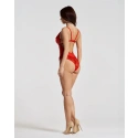 - czerwony teddy z ozdobną koronką i wycięciem pod biustem