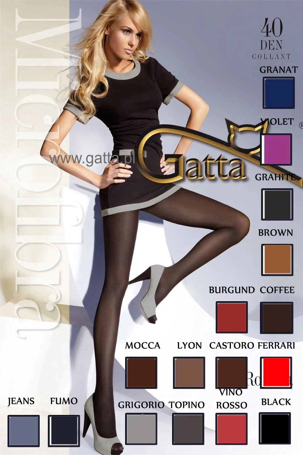 Rajstopy damskie, wykonane z mikrofibry, kryjące, matowe, bez zaznaczonej części majteczkowej. Płyta 40-dniowa.