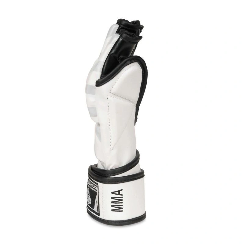 Trwała syntetyczna skóra wzmacnia każdy blok, a otwarta konstrukcja pozwala błyskawicznie przejść z parteru do stójki. Minimalistyczny biało-czarny design z sentencją „True victory is victory over oneself” przypomina, że prawdziwy rywal kryje się w lustrze.