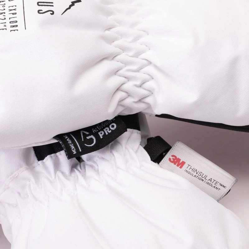 Rękawice posiadają ściągacz w nadgarstku dla lepszego dopasowania oraz specjalny materiał na kciuku do przecierania gogli.