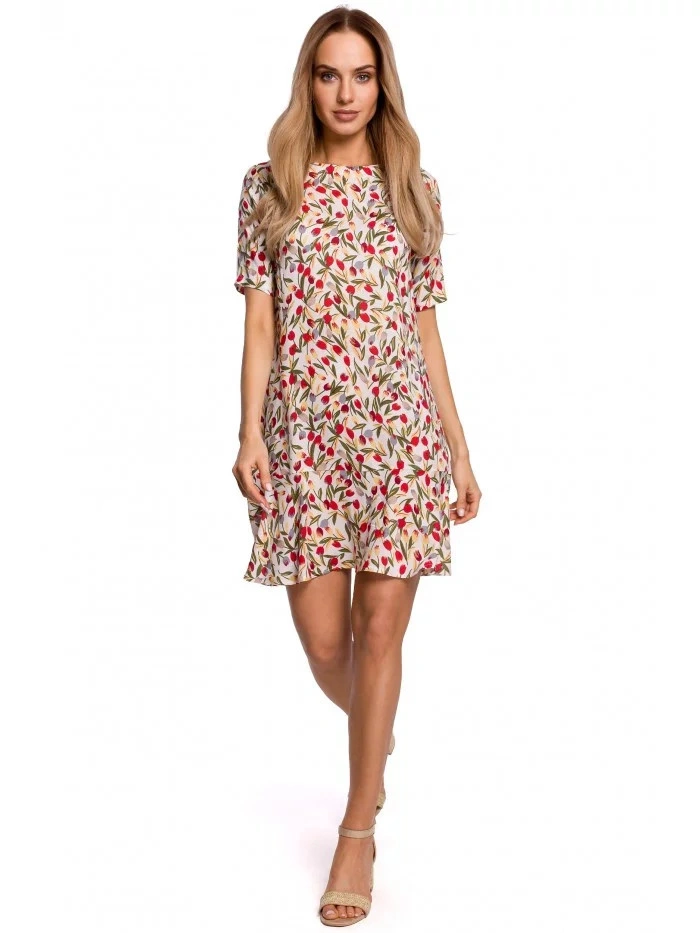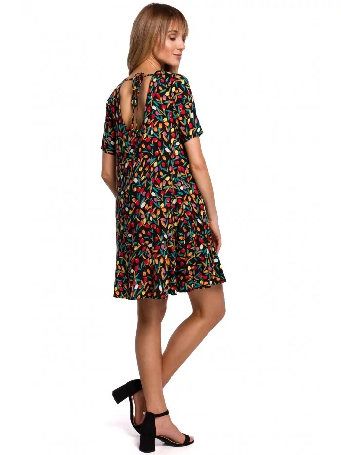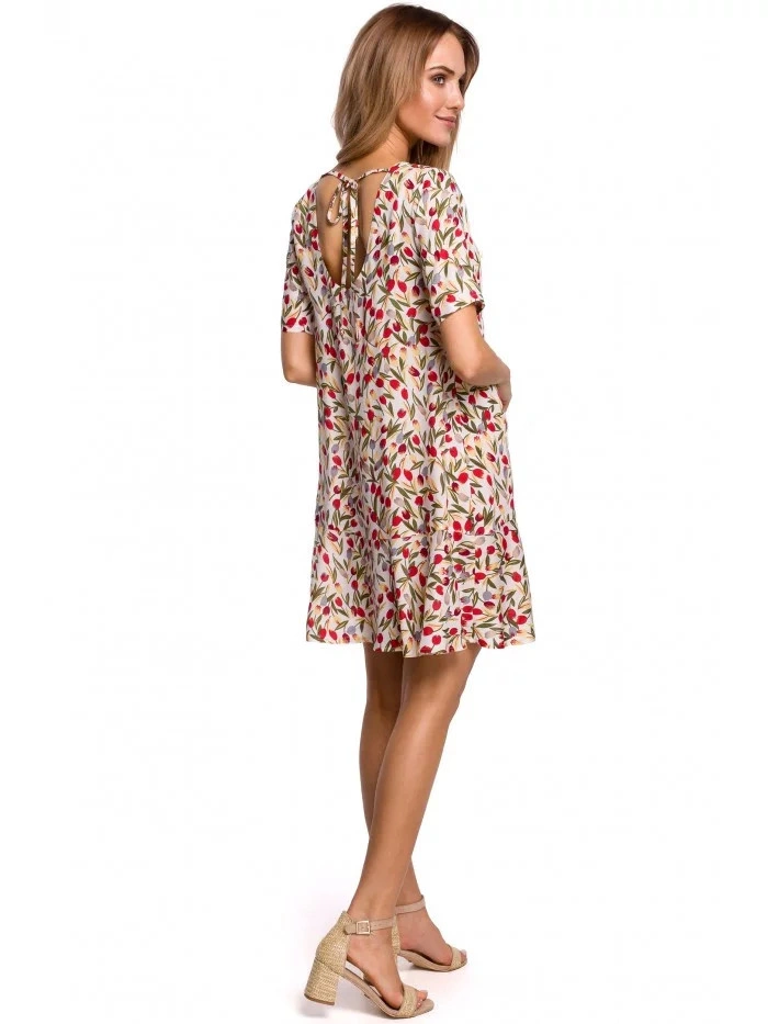 Idealna letnia sukienka, lekki materiał w kwiatowy wzór, luźny krój z odkrytymi plecami i pięknym wiązaniem.