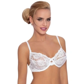 Miękki biustonosz na fiszbinach dla kobiet. Miseczki wykonane są z delikatnej, miękkiej koronki. Pas
