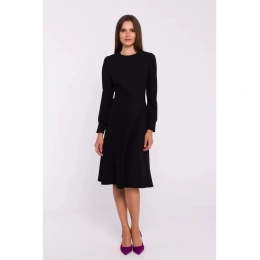SZCZEGÓŁY PRODUKTU: tkanina zwiewna sukienka zaokrąglony dekolt długie rękawy mankiety zapinane na guziki pasek w talii długość poniżej kolan bez podszewki Nasza modelka ma 174 cm wzrostu i nosi rozmiar S. Zaprojektowano i wykonano w Polsce