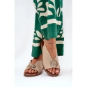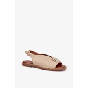 Sandály z eko kůže jsou elegantní nabídkou na letní dny. Usazeny na plochém podpatku, zajišťují komfort a stabilitu. Vpředu ozdoba, která přidává Subtilní kouzlo. Zapínané na regulovatelný pás s přezkou, umožňují dokonalé přizpůsobení k noze. Tyto sandály budou skvělou volbou pro elegantní stylizace, spojující módní vzhled s pohodlím.