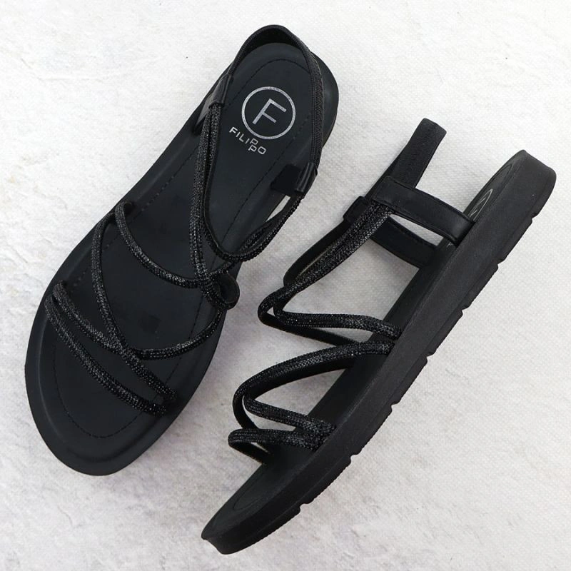 Opis Sandały damskie rzymianki z cyrkoniami czarne Filippo DS6884