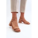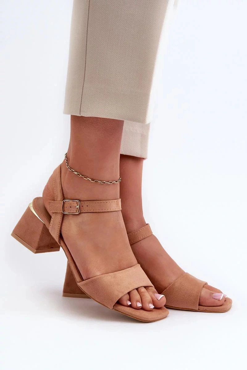 Damskie sandały wykonane z miękkiego w dotyku zamszu ekologicznego. Kolumnowy obcas zapewnia stabilność. Zapinane na regulowany pasek ze sprzączką, który gwarantuje idealne dopasowanie do stopy. Idealne do letnich sukienek!