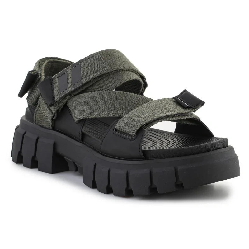 Ten wyjątkowy design łączy charakterystyczną platformę inspirowaną modelem Revolt z otwartą cholewką, wykonaną z tekstylnych pasków z regulowanymi zapięciami na rzep.