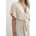 Sukienka z krzyżowym dekoltem to elegancki i kobiecy wybór, który sprawdzi się na wiele okazji. Głęboki dekolt nadaje sukience niepowtarzalnego uroku. Ten fason sukienki doskonale podkreśla dekolt i dodaje kobiecości, a jednocześnie jest bardzo delikatny i stylowy. Sukienka wykonana jest z przyjemnego w dotyku materiału, który dobrze układa się na sylwetce. To idealny wybór dla kobiet ceniących elegancję, kobiecość i subtelny styl. Sukienka świetnie sprawdzi się na romantycznych randkach, ale także na bardziej formalnych okazjach. Rozmiar jest uniwersalny i będzie odpowiedni dla kobiet noszących rozmiar S, M lub L.