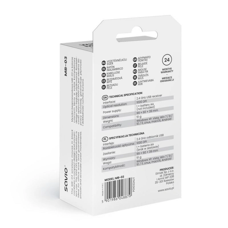 SAVIO MYSZ BEZPRZEWODOWA MB-03 N/A