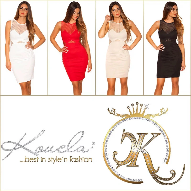 Seksowna sukienka damska z siateczki 18895 Beige - KouCla 95% poliester, 5% elastan