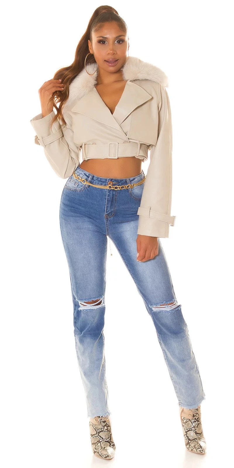 Sexy motorkářská bunda VK2 krémová - Koucla