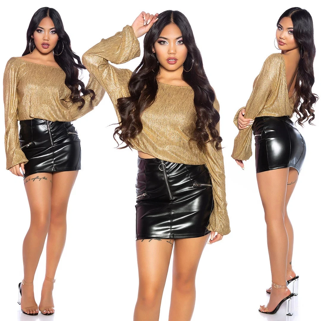 Seksowna błyszcząca bluzka 9002 - Koucla UNI złota