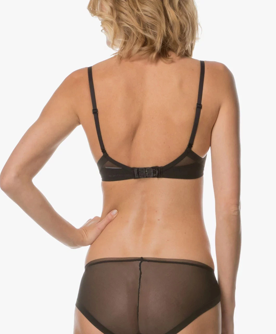 Damski półusztywniany biustonosz wykonany z gładkiej mikrofibry. Górna linia i boki są wykonane z dr