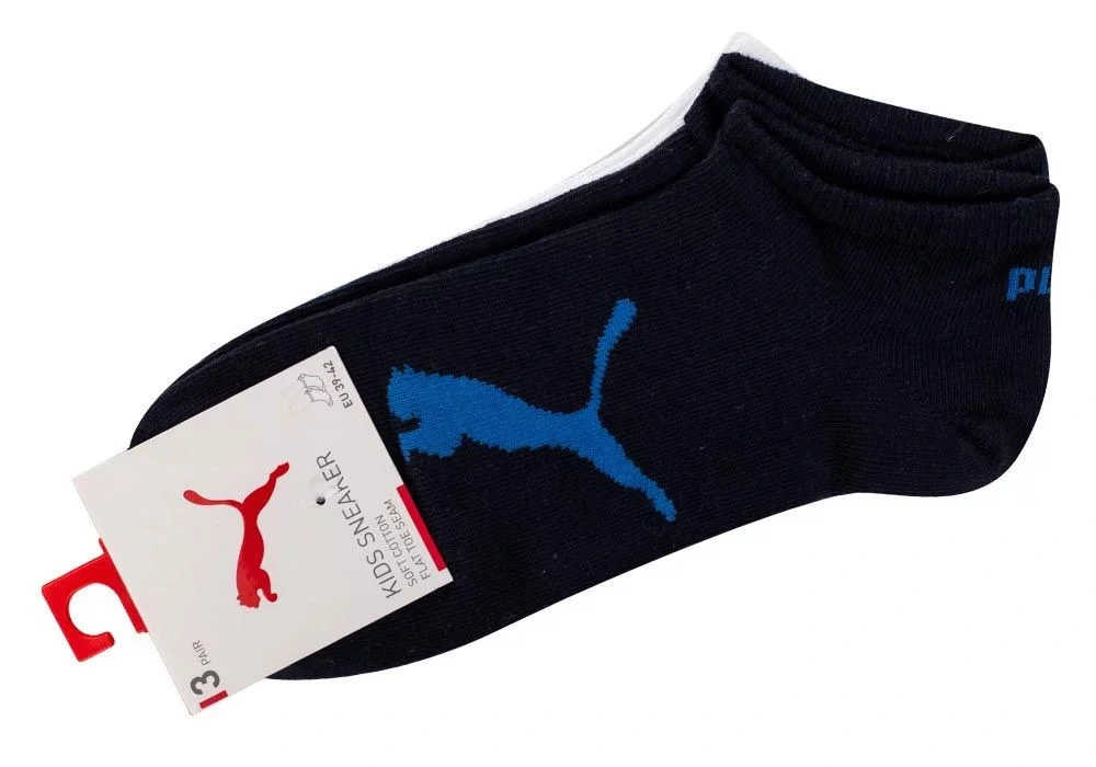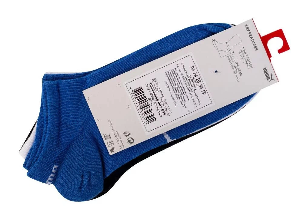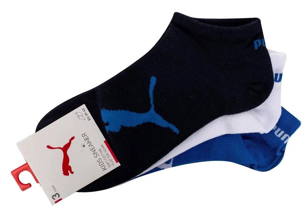 Značka: Puma Výrobek: mládež Kód výrobce: 907960 03 Množství: 3 páry Barva: modrá, bílá, tmavě modrá Materiál: 75% bavlna, 23% polyamid, 2% elastan Logo: bílý pár na přední straně, modrý pár na spodní straně, tmavě modrá barva na bočních párech loga výrobce, nápisy "Puma" na zadní straně chodidla na každém páru Typ: ponožky (tenisky) Oblíbenost: HIT Záruka výrobce: 24 měsíců Ponožky Puma z nejnovější kolekce. Logo "Puma" na každém páru na různých místech, velmi příjemné na dotek. Dokonale přiléhají k noze, neztrácejí svou pružnost ani po dlouhodobém nošení, zaručují nejvyšší komfort používání. Ponožky jsou vyrobeny z materiálů nejvyšší kvality. Jsou ideální pro každodenní použití i pro sport a rekreaci. Kód výrobce: 907960 03