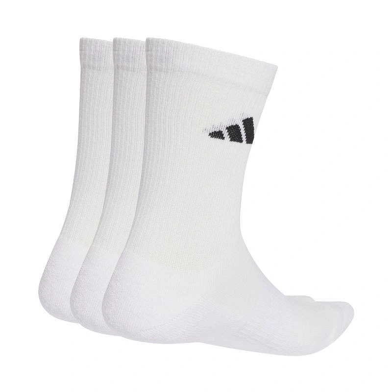 Skarpety adidas Cushioned Sportswear Crew białe JZ0530 Sportowe skarpety adidas, które dbają o komfort przy każdym kroku. Długość do połowy łydki. Prążkowany ściągacz z logo adidas. Amortyzacja w podeszwie. W śródstopiu dodatkowe szew stanowiący wsparcie. Dane techniczne:· Materiał: 56% bawełna, 40% poliester z recyklingu, 3% elastan, 1% nylon z recyklingu· Amortyzacja w podeszwie · Wsparcie w śródstopiu· 3 pary w opakowaniu