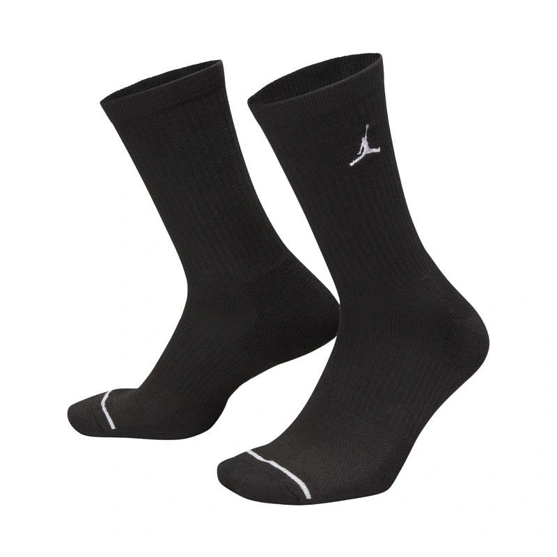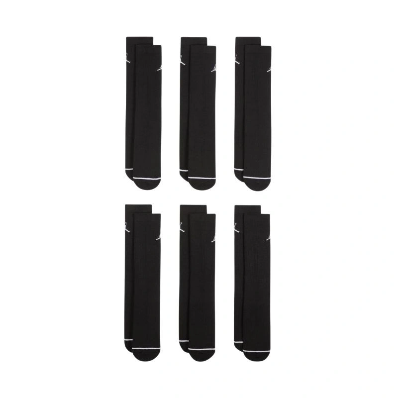 Skarpety Jordan Everyday Cushioned Crew Socks 6 par czarne HV6228 010 Skarpety marki Nike o długości do 1/3 łydki pomogą w utrzymaniu komfortu w czasie aktywności fizycznej. Ergonomiczny krój oraz wykorzystanie trwałych, elastycznych materiałów. Specjalna taśma przylega ściśle do łuku stopy zapewniając wsparcie. Amortyzacja wokół stopy. Górne ściągacze zapobiegają podwijaniu się skarpet. Logo Jumpman. Zestaw zawiera 6 par. Materiał: 96% poliester z recyklingu, 3% elastan, 1% nylon