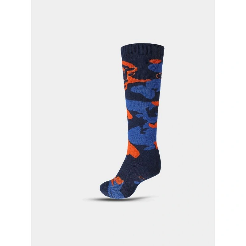 Model posiada wydłużony krój do połowy łydki, co poprawia ochronę termiczną i stabilność skarpety. W zestawie znajduje się 1 para, a całość uzupełnia logo 4F na łydce oraz atrakcyjny nadruk na całej powierzchni.