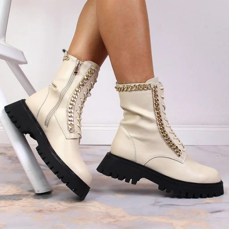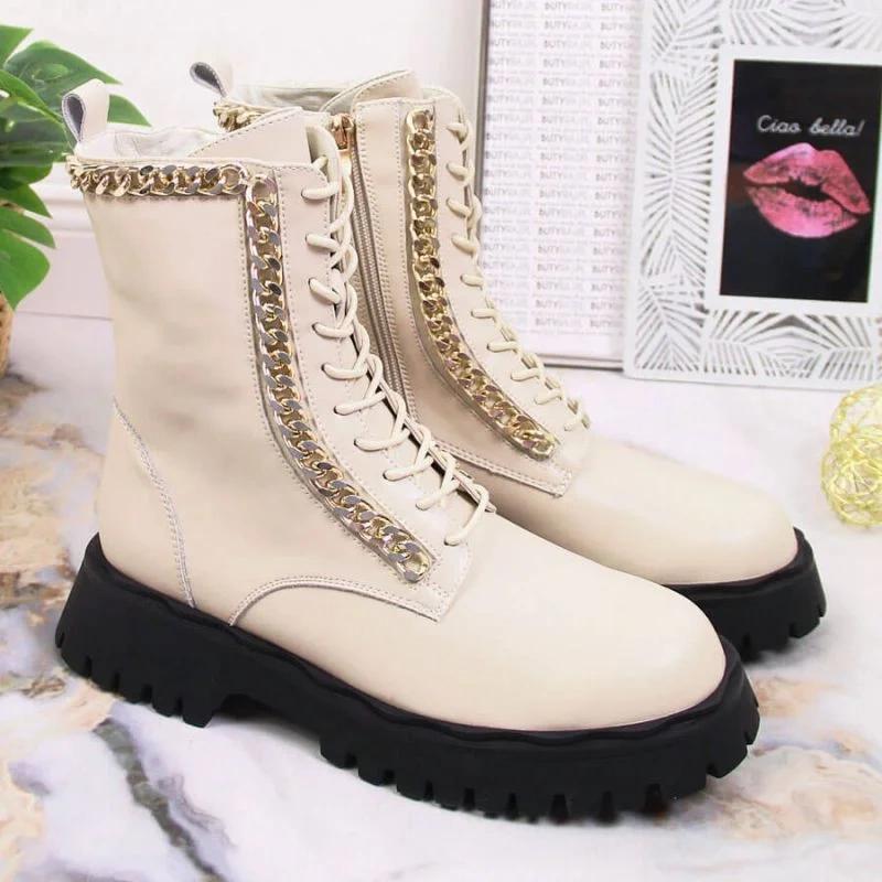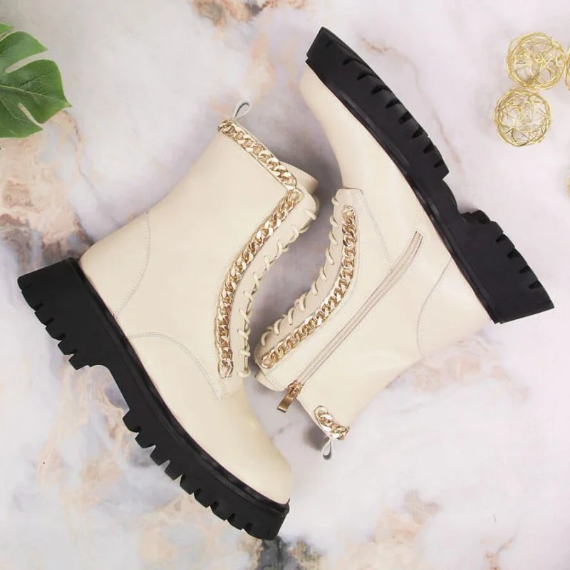 Skórzane botki z łańcuszkiem ocieplane Artiker W HBH40