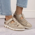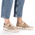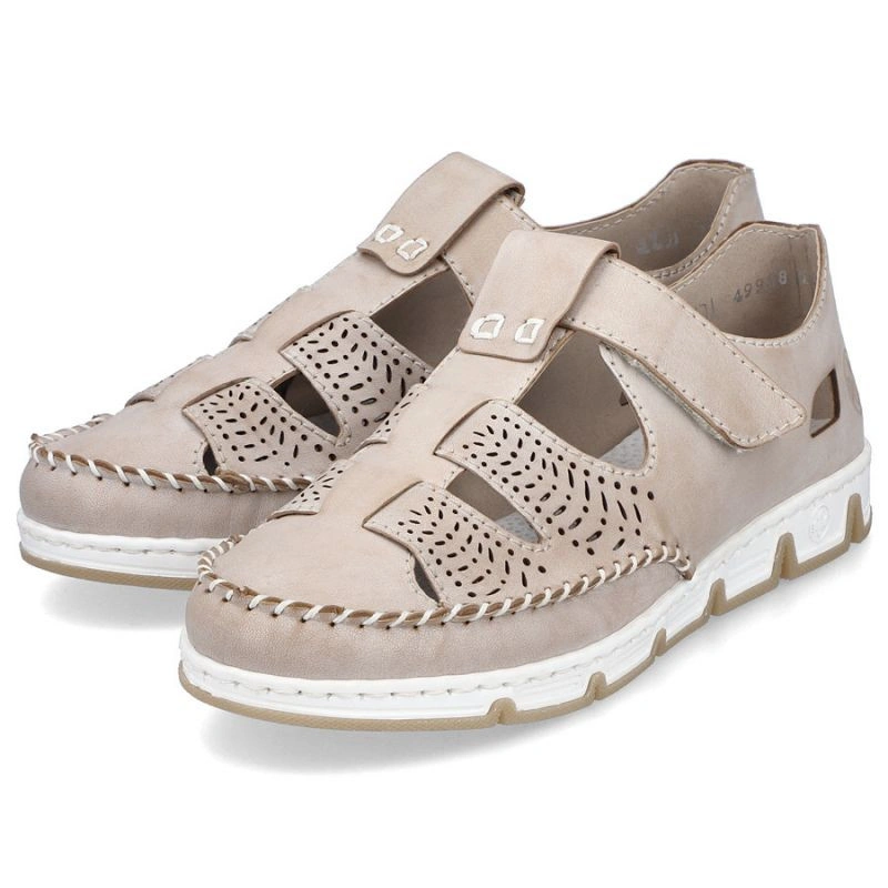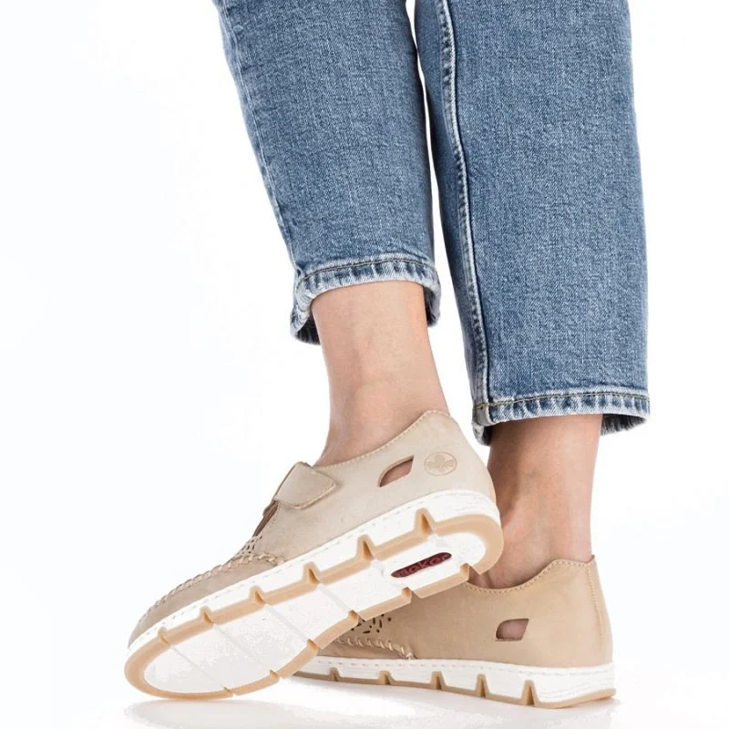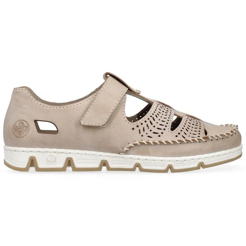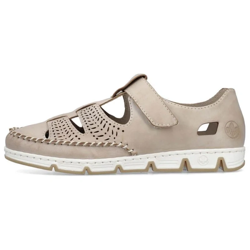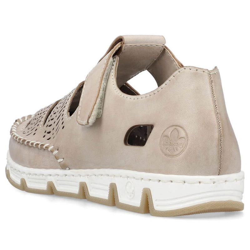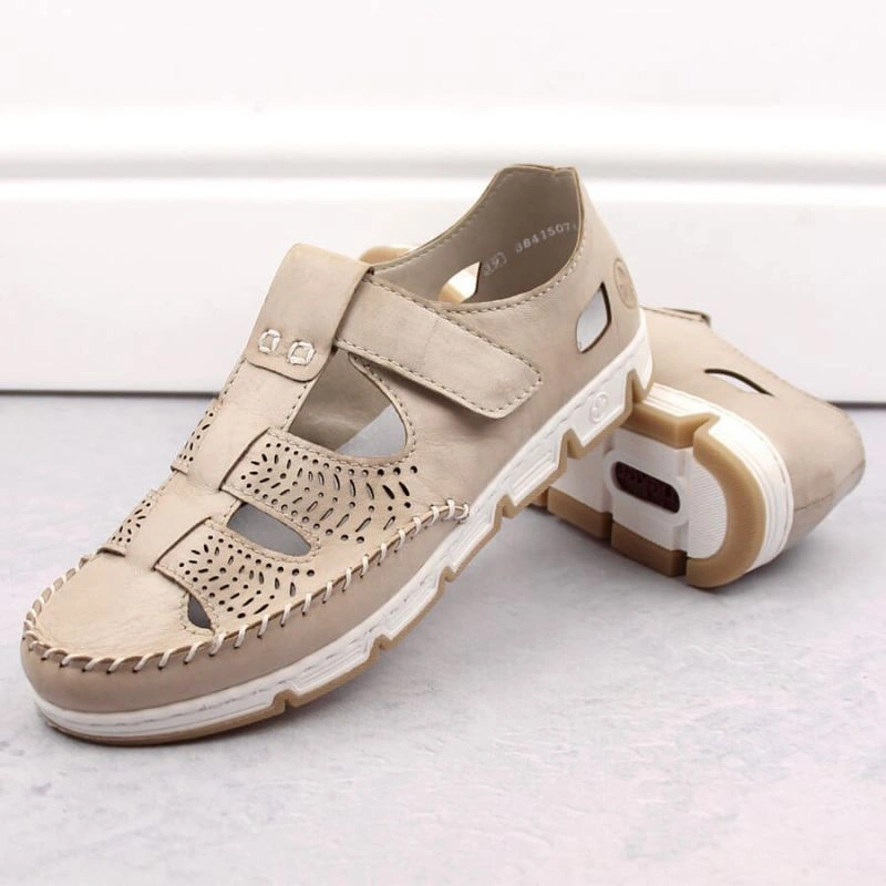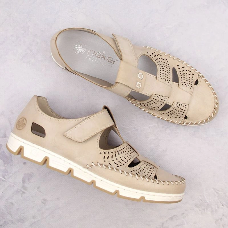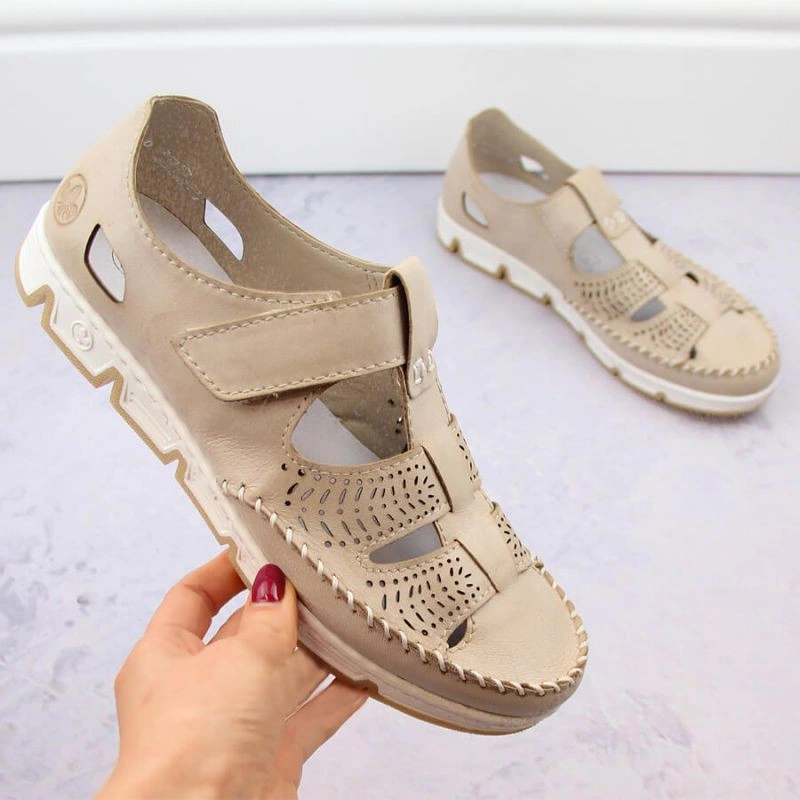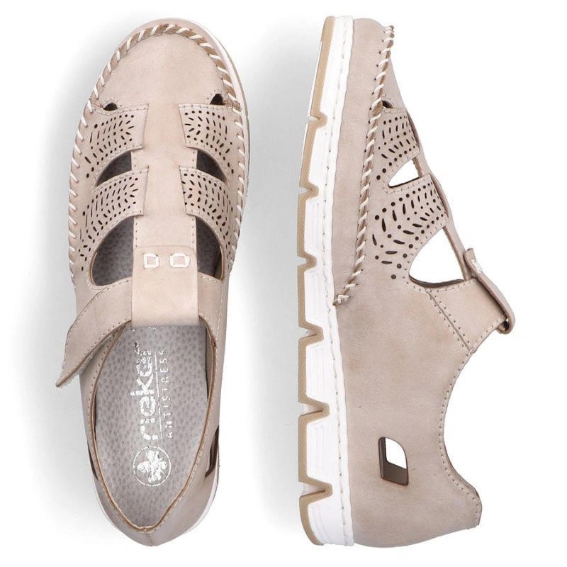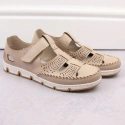 Skórzane półbuty na rzep ażurowe Rieker W RKR651 beżowe