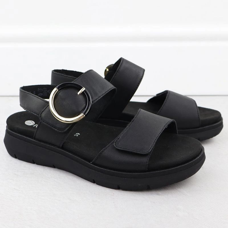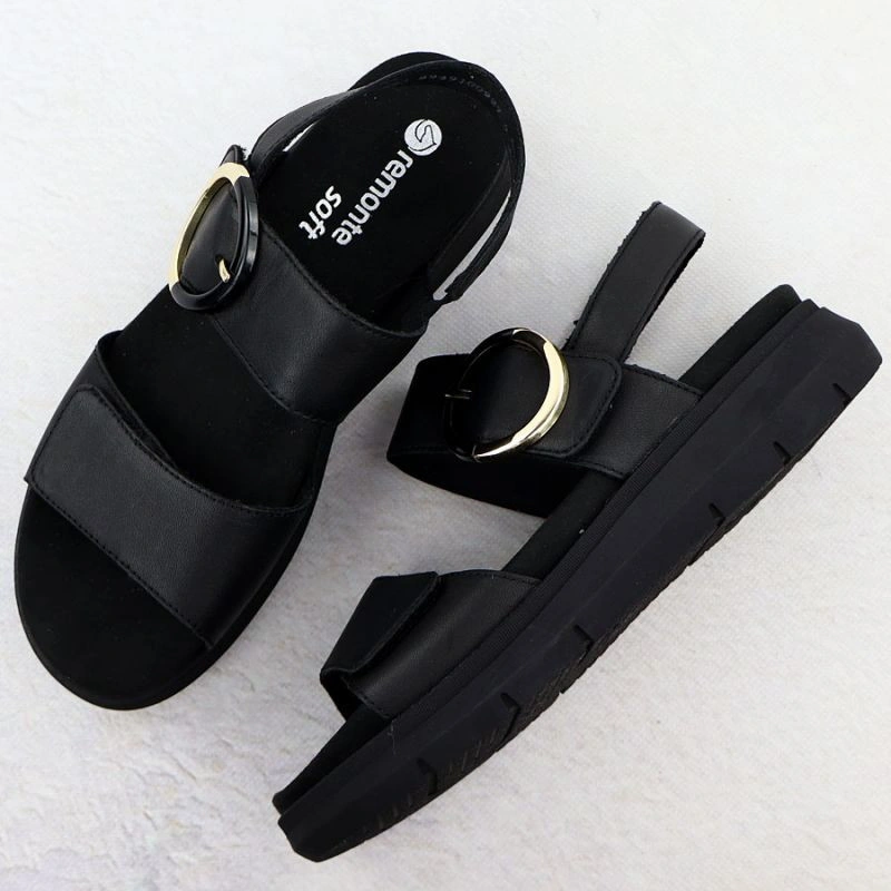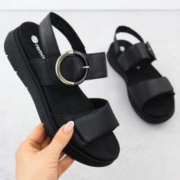 Opis Skórzane sandały damskie na koturnie czarne Remonte D2K50-00