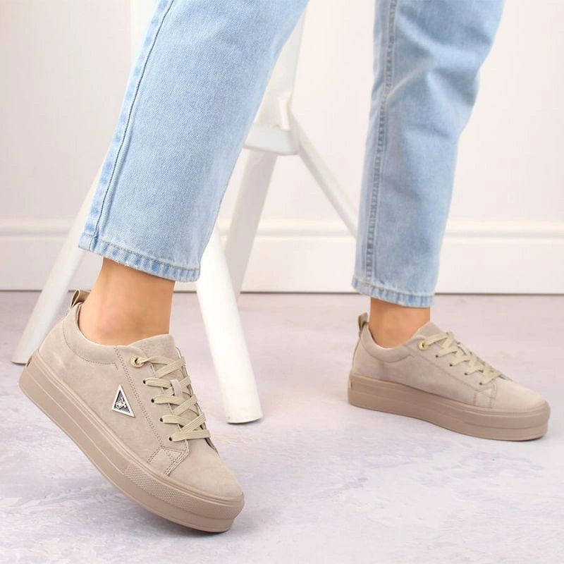 Skórzane zamszowe półbuty na platformie Filippo W PAW315C beżowe