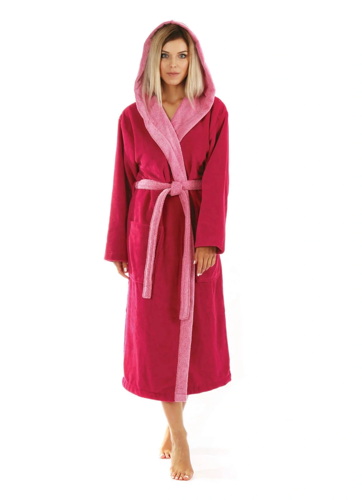 Wysokiej jakości długi, miękki szlafrok damski - wiązanie w talii - kaptur - kieszeń 80% bawełna, 20