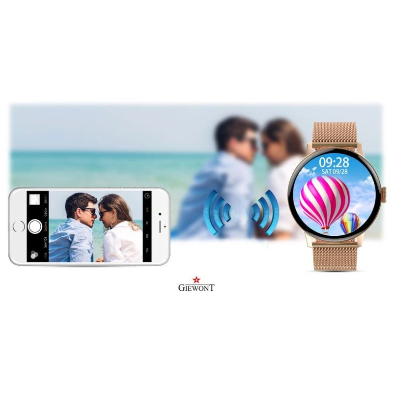 Smartwatch Damski GIEWONT GW330-1 to nowoczesny i stylowy dodatek, który doskonale łączy funkcjonalność z eleganckim, kobiecym designem. Został zaprojektowany tak, aby podkreślać indywidualny styl użytkowniczki, jednocześnie oferując praktyczne rozwiązania na każdy dzień. Smukła koperta i subtelne detale sprawiają, że zegarek prezentuje się wyjątkowo szykownie, a możliwość wymiany paska pozwala jeszcze lepiej dopasować go do stroju i okazji. Urządzenie oferuje szeroki zakres funkcji, które usprawniają codzienność. Można z niego rozmawiać, odczytu wiadomości i powiadomień z telefonu, przez kontrolę muzyki, aż po wygodne zdalne sterowanie aparatem. Wszystko to dostępne jest na wyraźnym, kolorowym ekranie, który zapewnia komfort obsługi niezależnie od warunków. GIEWONT GW330-1 wspiera również dbanie o zdrowie i dobre samopoczucie. Monitoruje tętno w czasie rzeczywistym, analizuje jakość snu oraz zlicza kroki i spalone kalorie, dzięki czemu możesz na bieżąco śledzić swoje postępy. Wbudowane tryby sportowe motywują do aktywności i pomagają świadomie planować treningi. Smartwatch jest idealnym narzędziem zarówno dla osób prowadzących intensywny, aktywny tryb życia, jak i tych, które chcą zadbać o regularny ruch na co dzień. Wydajna bateria zapewnia wielodniowe działanie bez konieczności częstego ładowania, co czyni GW330-1 niezwykle praktycznym urządzeniem do pracy, domu i podróży. To smartwatch, który jest nie tylko piękny, ale także inteligentny – niezawodnie wspiera Cię w organizacji dnia, dba o Twoje zdrowie i dodaje stylu każdej stylizacji. Jeśli szukasz zegarka, który potrafi więcej i wyróżnia się elegancją, GIEWONT GW330-1 będzie strzałem w dziesiątkę.
