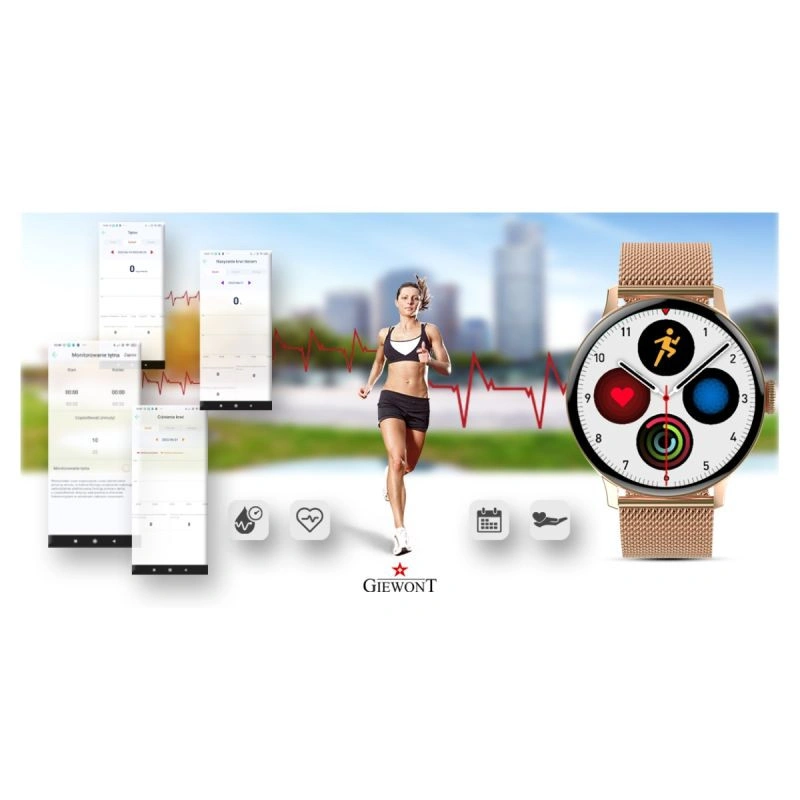 Dzięki sensorowi możesz w każdej chwili zmierzyć lub wykonać pomiar: ciśnienia krwi, tętna lub saturacji - zawartość tlenu we krwi w swoim organizmie. Kontroluj wyniki podczas każdej aktywności fizycznej. Niezależnie czy jeździsz na rowerze, biegasz, czy też po prostu jesteś w pracy lub odpoczywasz. Twój smartwatch Giewont stanie się osobistym asystentem dbającym o twoje zdrowie każdego dnia.