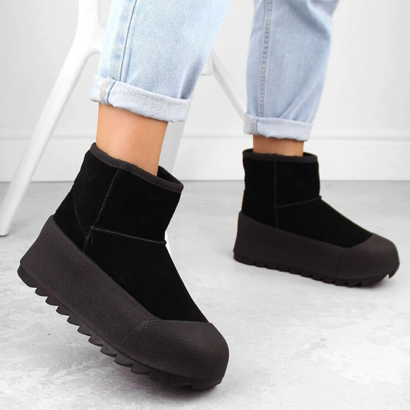 - Buty posiadają solidną, grubą podeszwę izolującą od zimna.