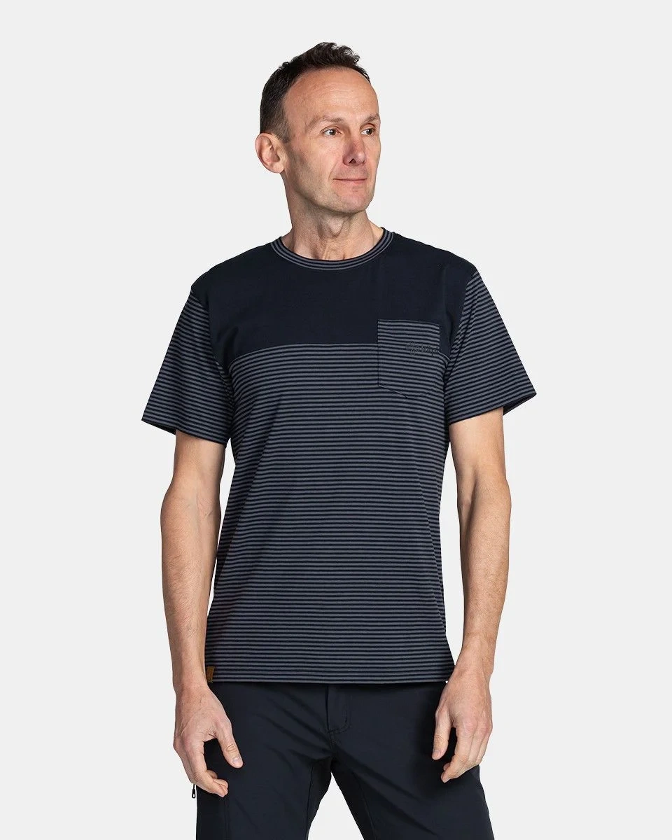 Bawełniana koszulka męska Kilpi SORGA-M ma krótkie rękawy, okrągły dekolt, krój regular fit i małą kieszonkę na piersi.Kilpi SORGA-M jest dostępna we wzorze w paski.Model na zdjęciu: rozmiar M, wzrost 191 cm, obwód klatki piersiowej 97 cm, obwód talii 89 cm, obwód bioder 100 cm.Skład materiału: