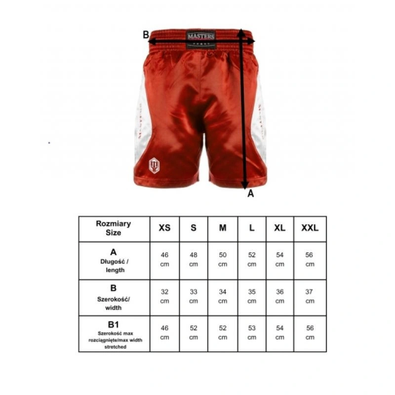 Spodenki bokserskie MASTERS SBOX-MFE czerwone XS czarny+XXL