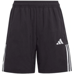 Spodenki dla dzieci adidas Tiro 23 Competition Downtime czarne HI4716 Spodenki dla dzieci adidas sprawdzą się podczas aktywności i poza nią. Elastyczna talia regulowana sznurkiem. Wyszywane logo. Model z piłkarskiej linii Tiro. Materiał: 100% poliester pochodzący z recyklingu