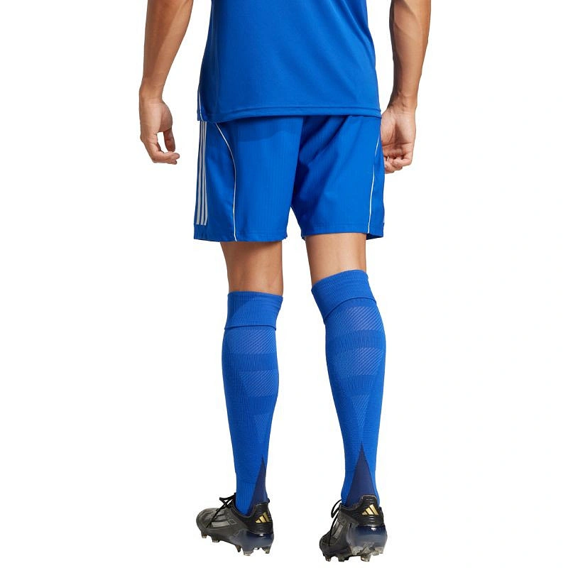 Spodenki męskie adidas Tiro 25 Competition Match niebieskie JG1065 Męskie spodenki adidas sprawdzą się podczas rozgrywek meczowych. Model pochodzi z linii Tiro. Elastyczna talia regulowana wewnętrznym sznurkiem. Technologia Aeroready pomaga odprowadzać nadmiar wilgoci do zewnętrznych warstw. Materiał: 100% poliester pochodzący z recyklingu