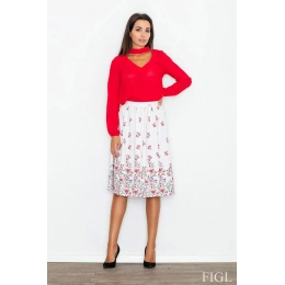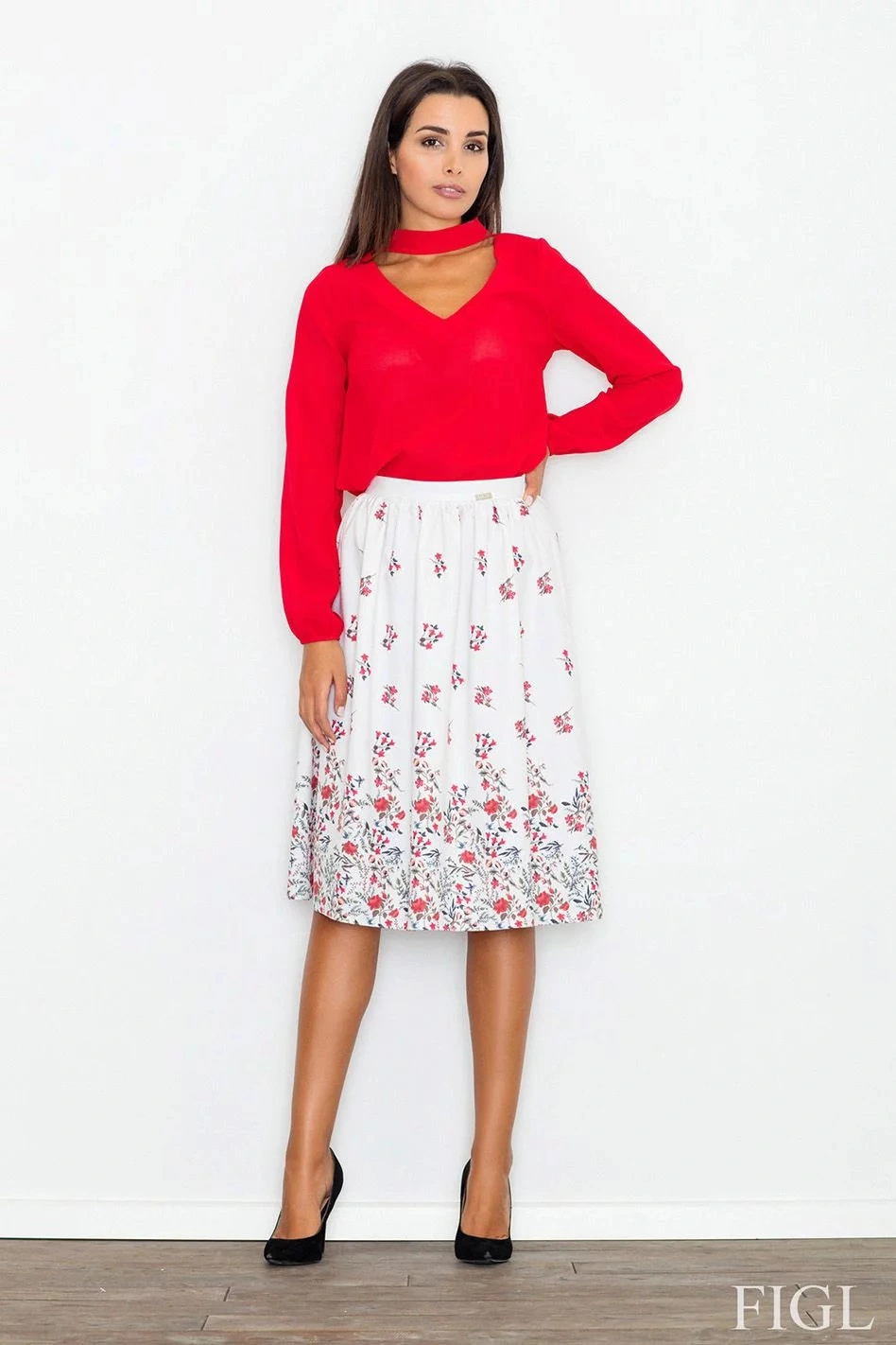Spódnica damska M537 - Figl biała z kwiatowym wzorem 40