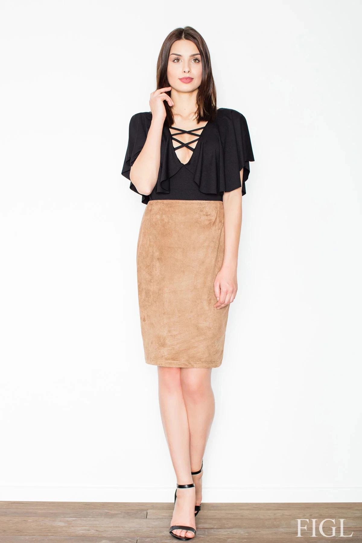 Spódnica damska M5460 - Figl S-36 ciemny brąz