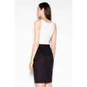 Modna ołówkowa spódnica o długości midi wykonana z zamszu. Charakterystyczną cechą spódnicy jest rząd ozdobnych guzików, które rozciągają się wzdłuż całej długości spódnicy.