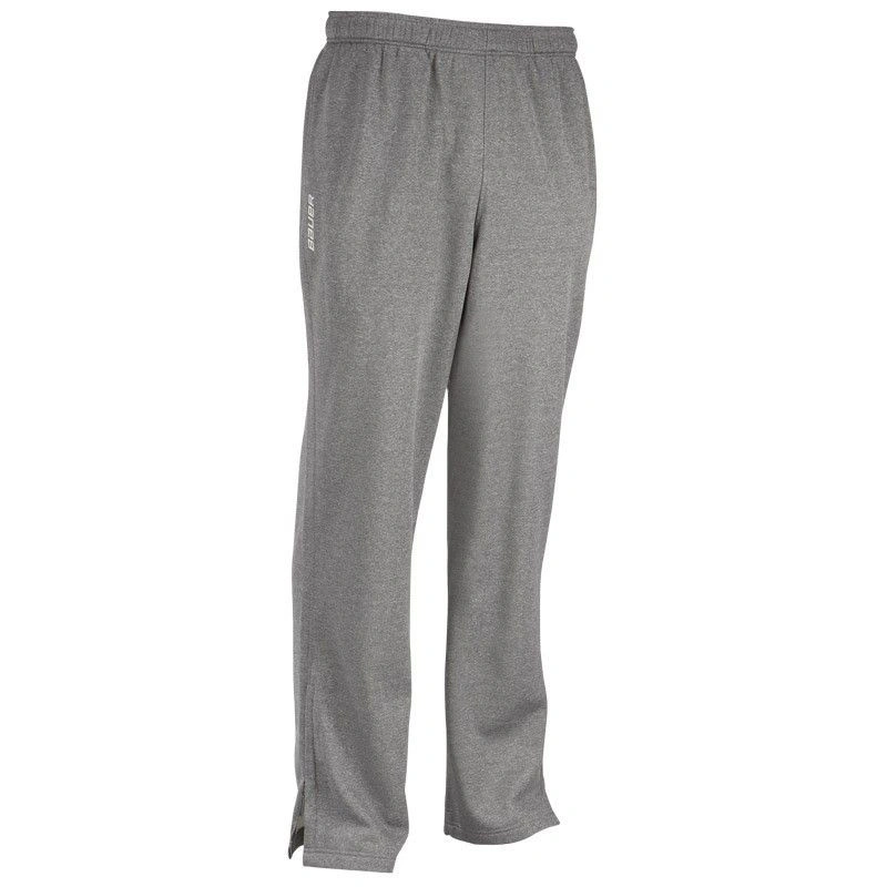 Spodnie dresowe Bauer Team Premium Sweatpant Posiadają elastyczny pas i sznurek ściągający Dwie kieszenie boczne na szwie Zamki na nogawkach Lekkie, pochłaniające wilgoć Z boku po prawej stronie umieszczono wyszywane logo Bauer Materiał: 100% poliester