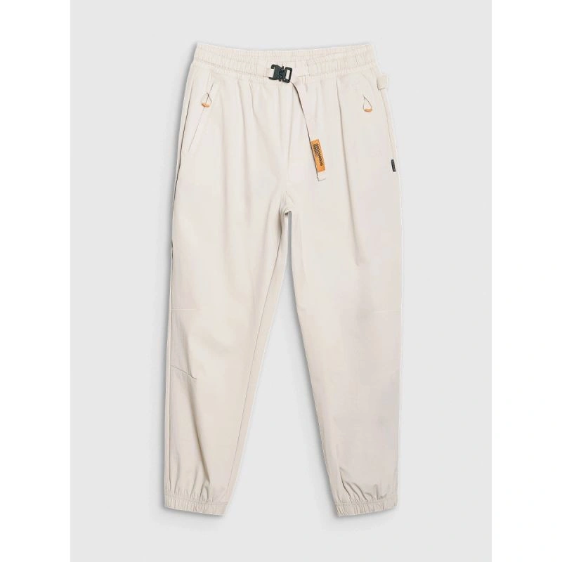 Średnia gramatura materiału 150 gsm sprawia, że spodnie są miękkie i przewiewne. Wykonane z materiału syntetycznego, który jest trwały i łatwy w pielęgnacji, bez podszycia – dzięki czemu są lekkie i idealne na cieplejsze dni.