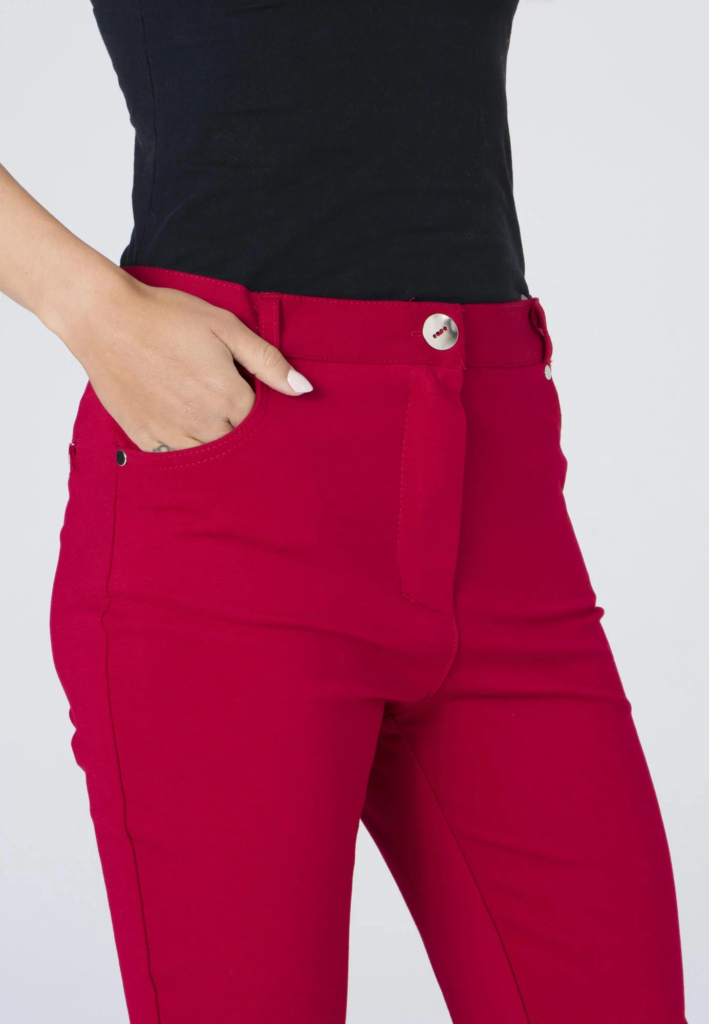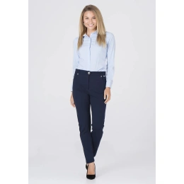 Damskie spodnie z dzianiny. Wysoka talia. Kieszonka, ozdobne przeszycia z tyłu, które wyszczuplają nogi.