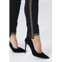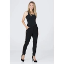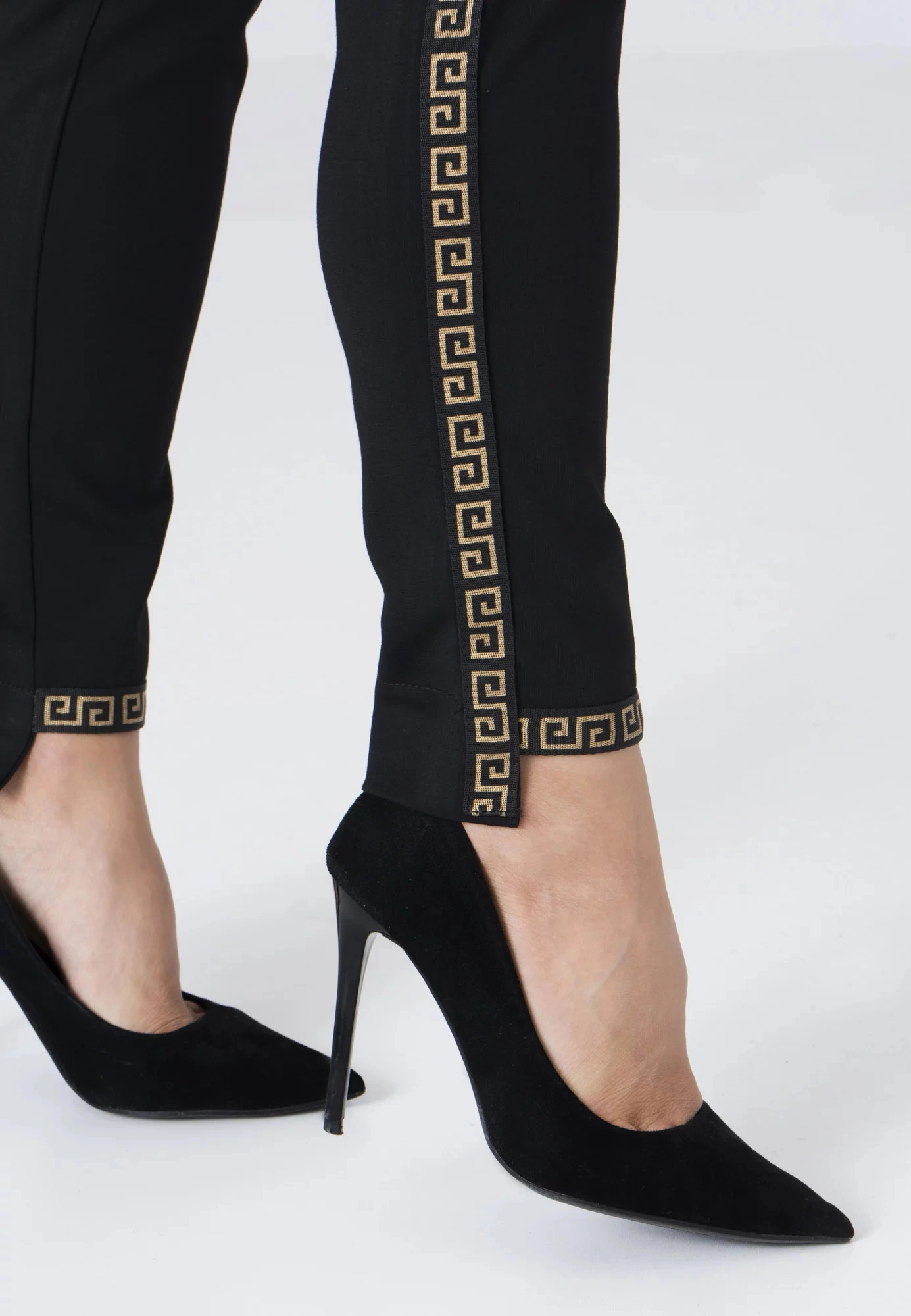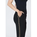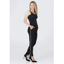 Czarne spodnie z dzianiny o dopasowanym kroju. Wysoka talia. Kieszenie, asymetryczne nogawki, ozdobny pasek.