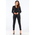 Proste spodnie damskie o kroju cygaretek. Zwężana ku dołowi, wyposażona. Wysoki krój spodni podkreśla talię. Z marynarką z naszej oferty mogą stworzyć kompletny garnitur na spotkania biznesowe, uroczystości rodzinne lub do pracy biurowej. Proste cygara są niezbędnym elementem każdej garderoby. Produkt został wyprodukowany w Polsce.