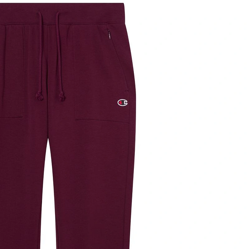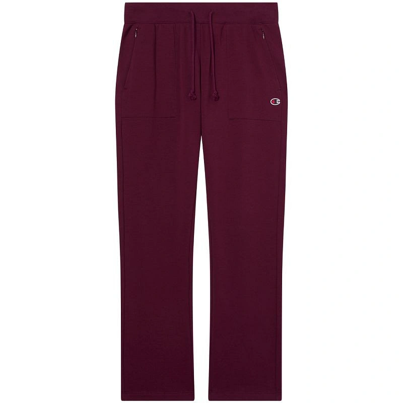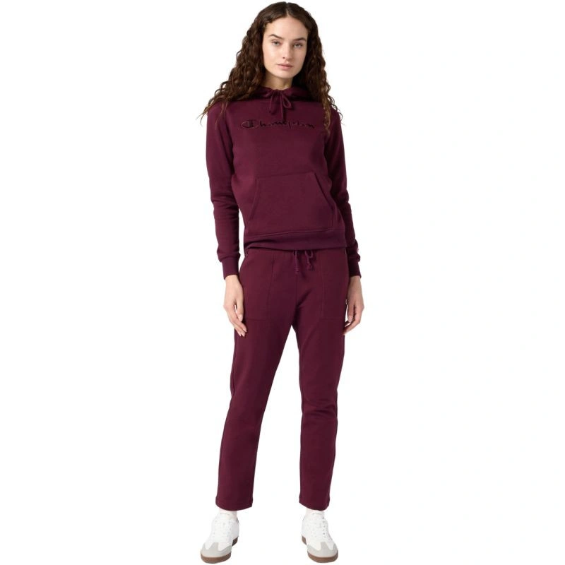 Spodnie damskie Champion Slim Pants bordowe 118041 RS522 Damskie spodnie dresowe Champion sprawdzą się na co dzień. Miękka dzianina. Zapinane kieszenie boczne. Nogawki, bez ściągaczy. Krój slim. Regulacja w pasie w postaci sznurka. Elastyczny pas. Materiał: 80% bawełna, 15% poliester, 5% elastan