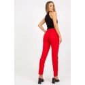 Spodnie damskie z wysoką talią, zwężanymi nogawkami, zapięciem na guzik i zamek błyskawiczny. Spodnie mają kieszenie po bokach i są uzupełnione paskiem.
