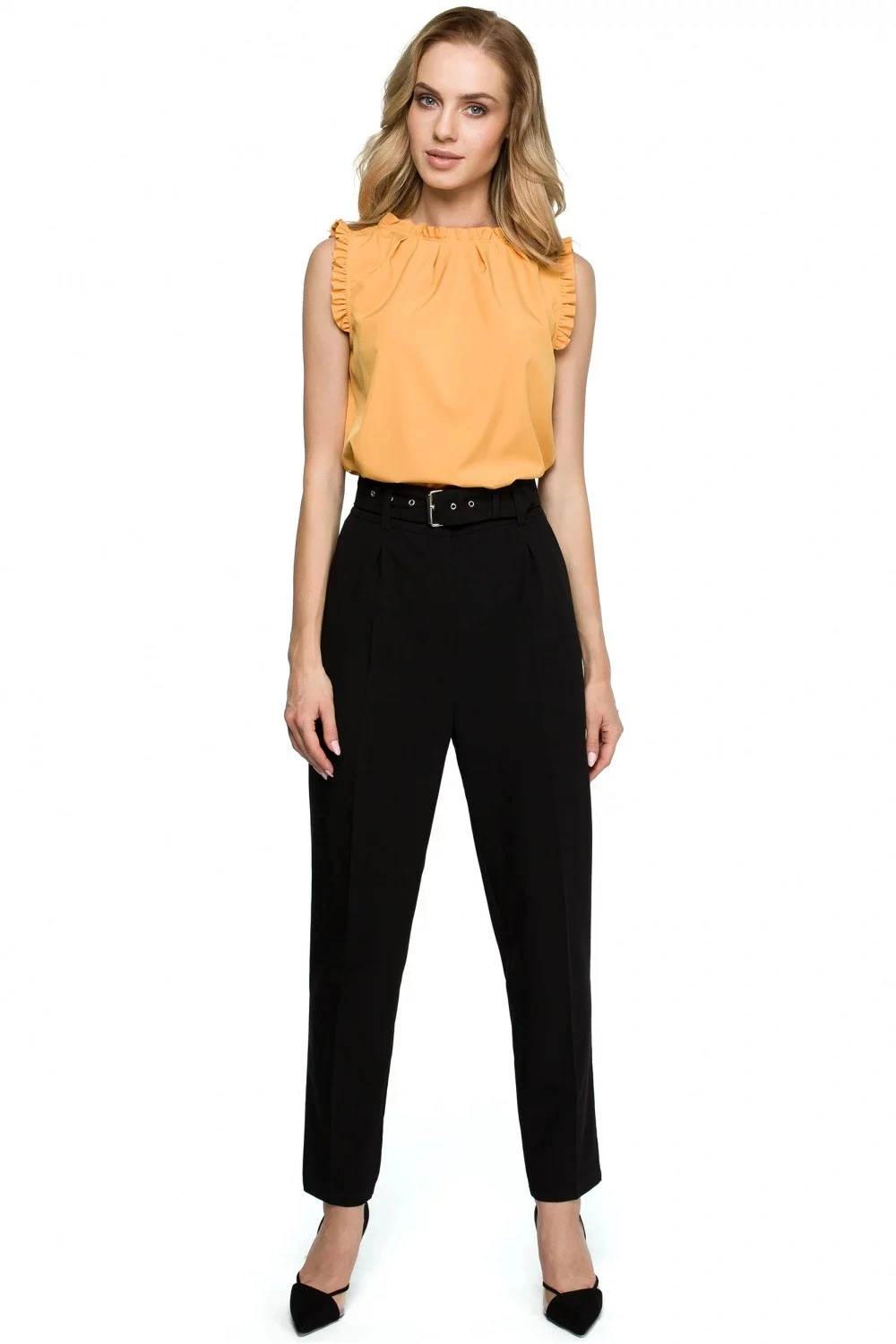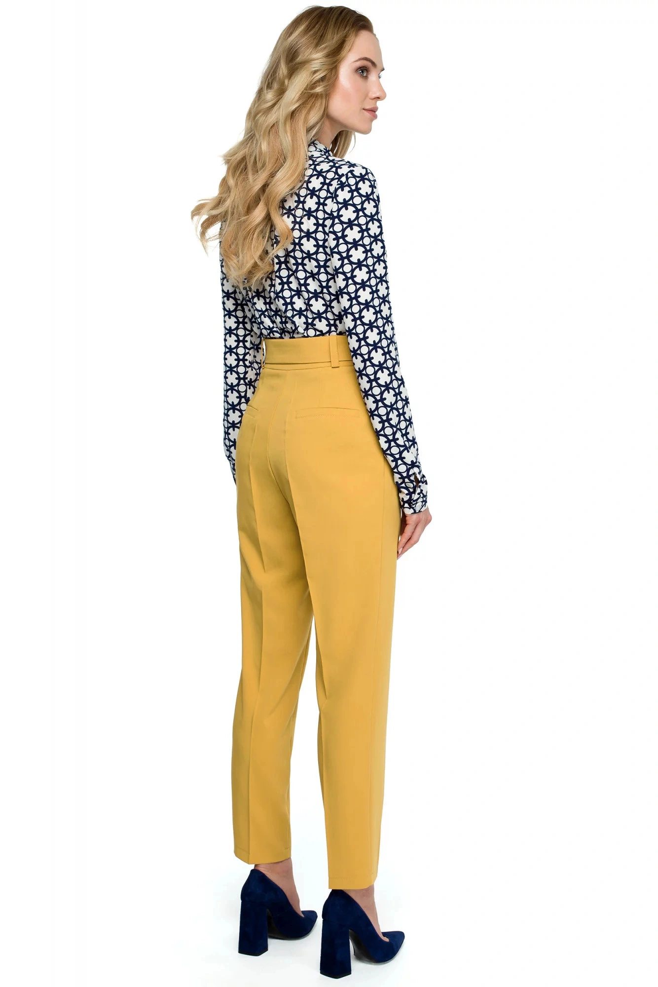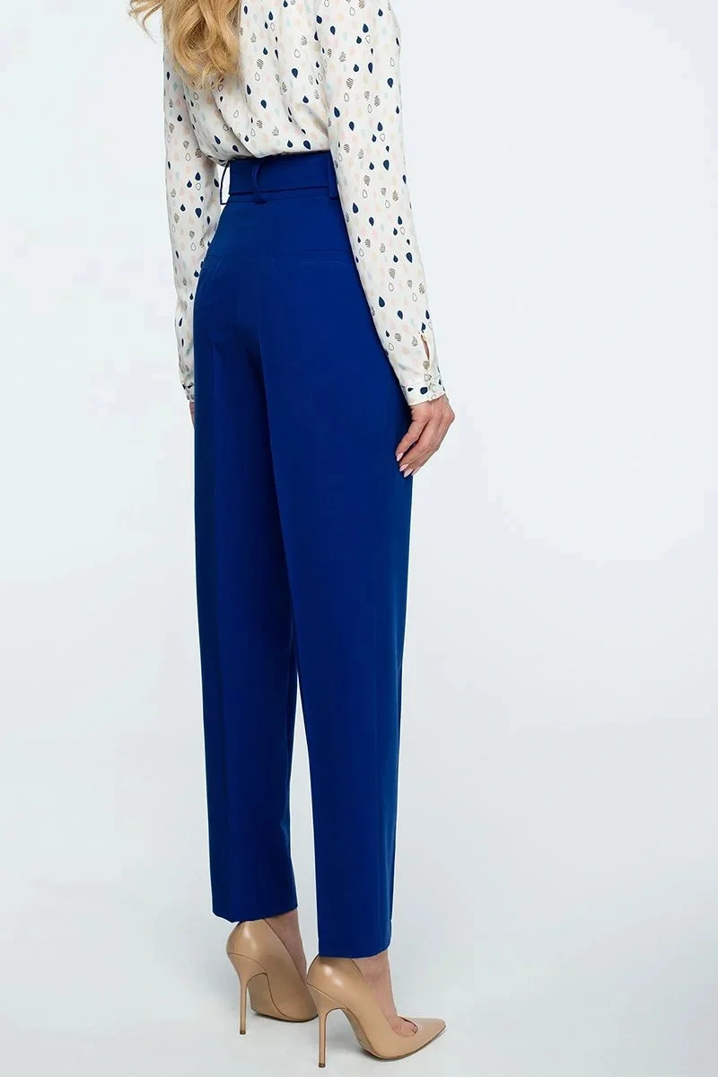 Klasyczne spodnie o dopasowanym kroju są niezbędnym elementem każdej garderoby - spodnie z wysokim stanem podkreślają talię, a zwężane spodnie do kostek optycznie wydłużają nogi. Pasek z metalową klamrą to kolejny modny dodatek. Spodnie zapinane na zamek błyskawiczny i rzep z kieszeniami po bokach.