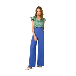 Spodnie z szerokimi nogawkami i wyrzeźbioną talią, eleganckie i szykowne. Spodnie z ukrytym zamkiem błyskawicznym i bocznymi kieszeniami.