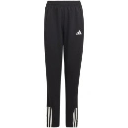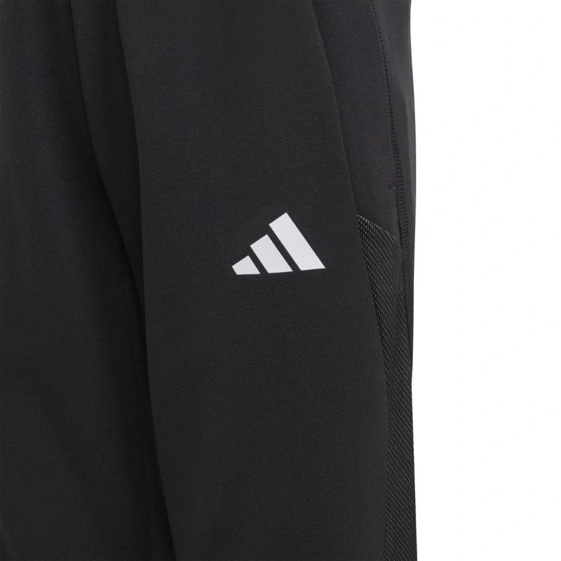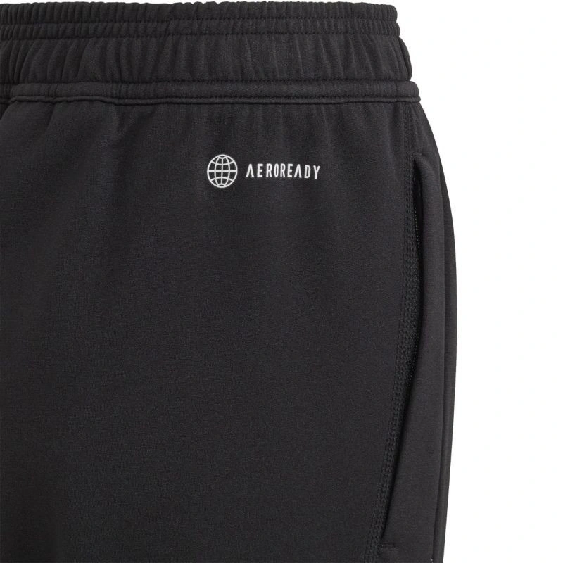 Spodnie dla dzieci adidas Tiro 23 Competition Training czarne HI4721 Spodnie dla dzieci adidas sprawdzą się podczas treningu. Fason z linii Tiro wyprodukowano z szybkoschnących włókien wspartych technologią Aeroready odpowiadającą za odprowadzenie nadmiaru wilgoci do zewnętrznych warstw w celu pozostawienia długotrwałego uczucia świeżości. Co więcej poliestrowe włókna powstały w procesie recyklingu. Dopasowany krój ze średnio zabudowaną talią. Strategicznie rozlokowane panele o siateczkowej strukturze. Zapinane kieszenie boczne. Zamki u dołu nogawek. Materiał: 100% poliester z recyklingu