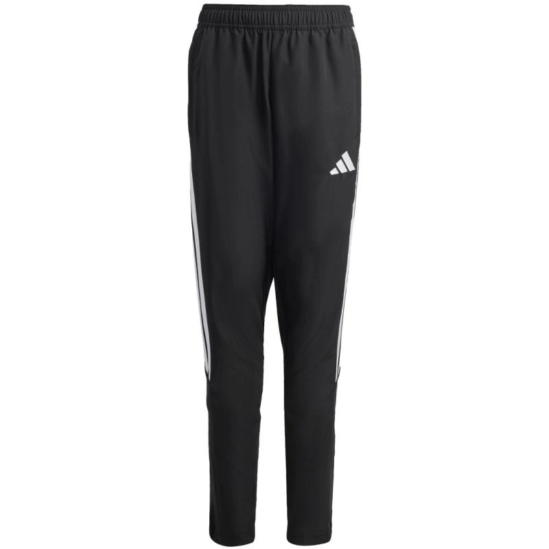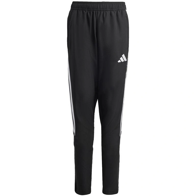 Spodnie dla dzieci adidas Tiro 26 League Presentation czarne KA6418 Spodnie dla dzieci adidas sprawdzą się podczas odpoczynku poza linią boczną boiska piłkarskiego. Regularny krój. Elastyczna talia dodatkowo regulowana wewnętrznym sznurkiem. Zapinane kieszenie boczne. Nogawki wykończone suwakami. Pozyskane w procesie recyklingu włókna. Model pochodzi z linii Tiro. Spodnie zapewnią wygodę i sportowy wygląd, gdy dbasz o odpowiednią regenerację po treningu. Materiał: 100% poliester z recyklingu